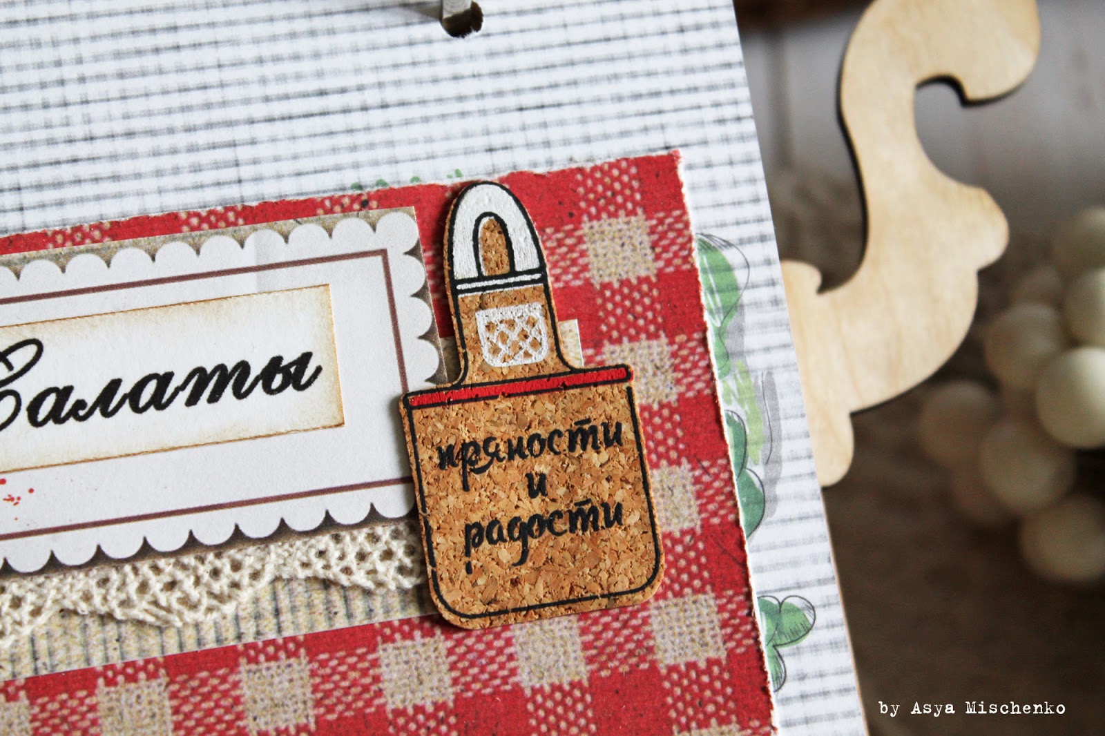 Забыла написать, что странички состаривала в кофе. Украсила штампами из кулинарной коллекции.
